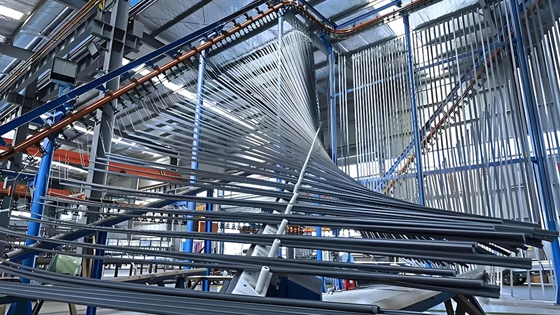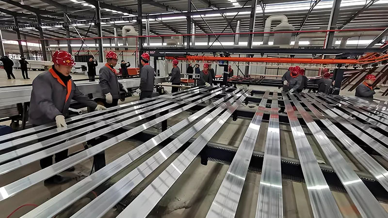 Als vertikal integriertes Unternehmen, das sich auf Forschung und Entwicklung, Design, Produktion, Vertrieb und Service spezialisiert hat, verfügen wir über 16 Aluminium-Strangpress-Produktionslinien, mehrere international fortschrittliche Schmelzöfen und Geräte zum Eloxieren, Färben und Pulverbeschichten. Die Anlage ist in der Lage, Aluminiumlegierungsprofile verschiedener Spezifikationen mit einer jährlichen Produktionskapazität von 80.000 Tonnen herzustellen.